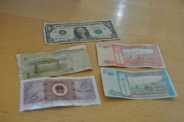 Por supuesto, este paso es totalmente opcional.  Quizá no desee dar al ladrón ningún dinero en absoluto!  En la foto es de USD uno que suele ser de casi ningún uso en los lugares viaje (facturas deben ser más de $20 y totalmente crujientes para intercambiarse), 23 centavos de la moneda China y unos 20 centavos de la moneda de Mongolia.  Es apenas la mezcla derecha que el destinatario seguramente sabrá que la cartera se pretende levantar.