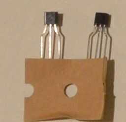 Sin embargo, ambos están orientados de manera diferente! Tenga en cuenta la orientación correcta en la imagen. Ranura en los transistores, luego voltee la placa y soldarlos en. Estos chicos poco como se deslice fuera de los orificios mientras que usted está de soldadura, así que es fácil acabar con el transistor más alto de lo que esperaba de pie. Esto no es un problema, pero si observas mientras se suelda la primera pierna, es fácil de poner un poco de presión en el transistor del otro lado del tablero con el dedo, calentar la pierna para que la soldadura se reajusta y baje el transistor. Cuando se quita el hierro, el transistor generalmente quedará puesto.
