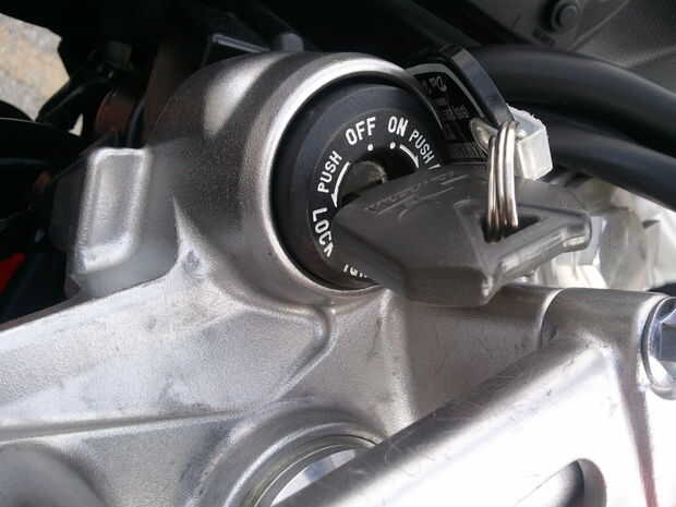 Muchas motocicletas disponen de una horquilla bloqueo antirrobo. Esto significa que el manillar están bloqueados en una posición dada vuelta cuando la moto está aparcada para que una persona no puede caminar con él, se le pegaron a caminar en círculos. Si tu moto tiene este puede tomar ventaja de ella por: