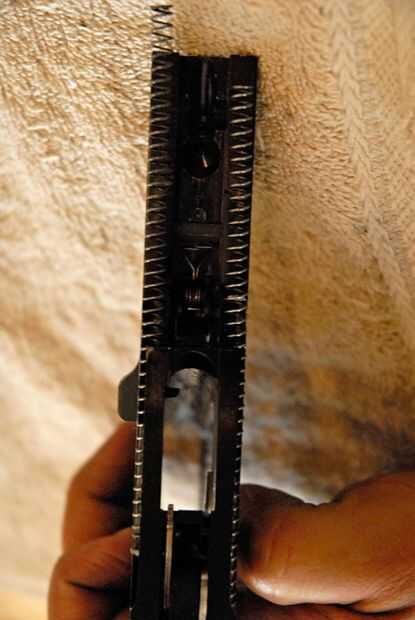 Esta parte fue un poco difícil para mí.  Es necesario levantar el bucle posterior del resorte del disparador sobre el espárrago en el gatillo, luego baje en la pequeña ranura en el perno.  Tiene, otra vez, tenía más fácil mostrar que describir, pero me cuesta mucho tomar fotos, ya que es una operación de 2 mano.