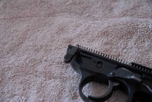 Luego deslice el pestillo de desmontaje en el lado izquierdo del marco. El émbolo y el resorte lo sostenga en su lugar.
