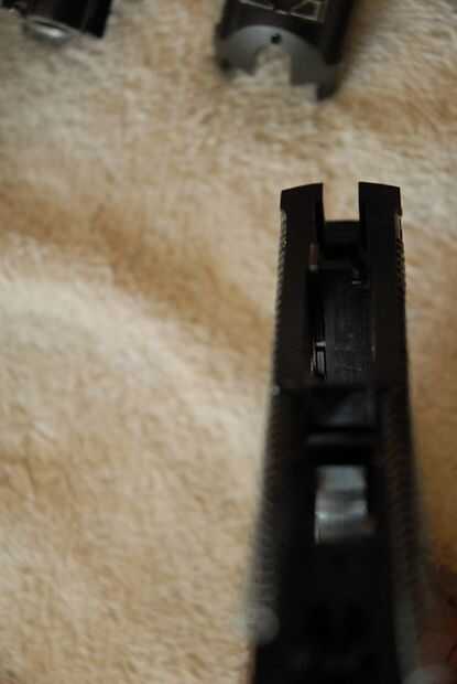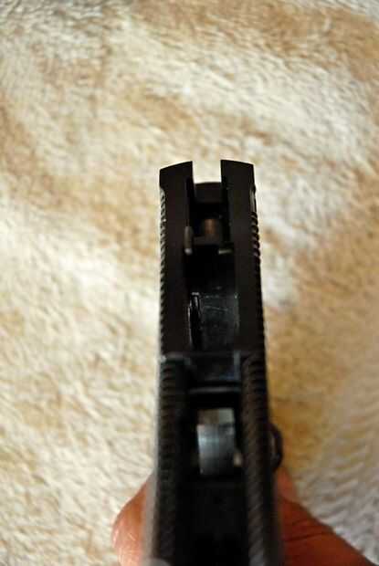 Fotos 6, 7 y 8 muestran el pin del revista bien, sostiene el eyector en su lugar.