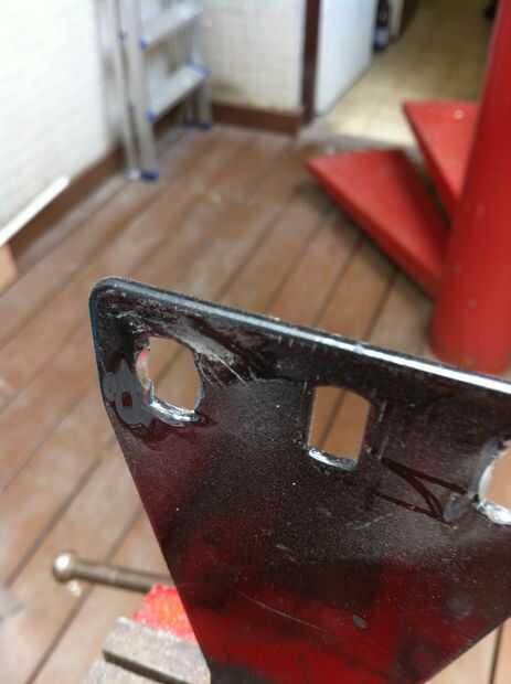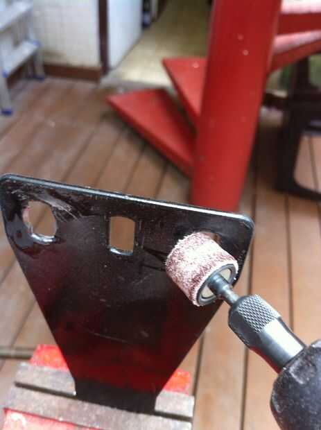 Primero tuve que gastar el tamaño de los orificios del soporte - usando el Dremel herramienta es muy fácil de pulir
