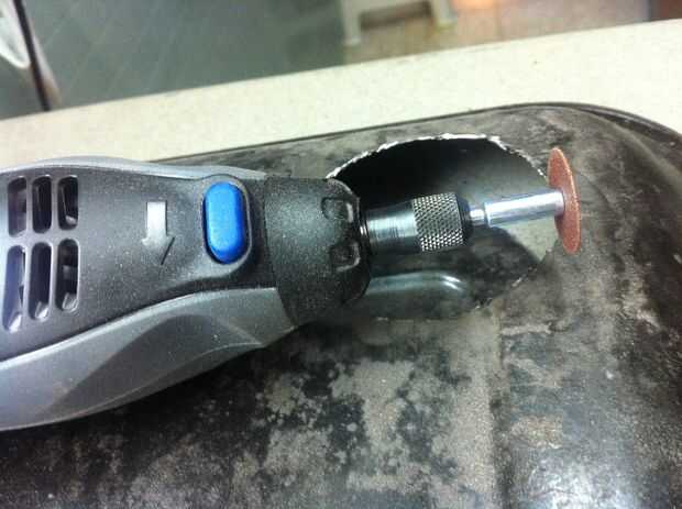 La solución, cortar un agujero en el lado de la placa (exactamente el tamaño del tubo).