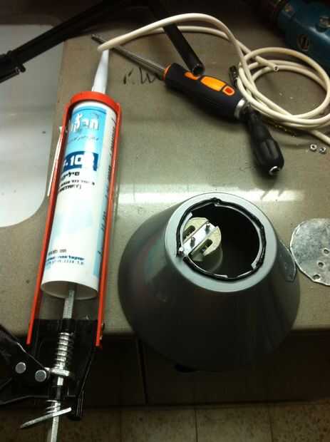 luego pegué con silicona la caja superior de la lámpara para evitar que agua
