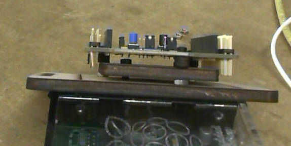 Colocar la base debajo de los 4 tornillos y unir. Tuercas de tornillo en la parte inferior. Probablemente necesitará deslizar un screwdriverunder fino pequeño Nucleo presionado las cabezas de los tornillos en la underboard. Una vez que se agregan las 4 tuercas, usted podría parar. Prefiero añadir poco de caucho de alimentación en la parte inferior de la base para nivelarla. Os muestro el montaje de núcleo parece desde una vista del borde, cuando todo montado.