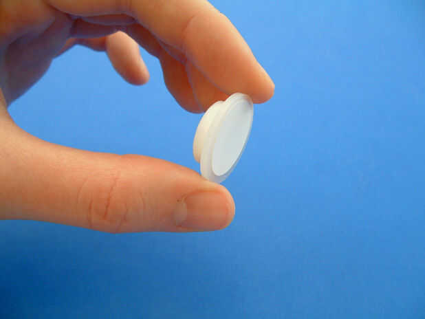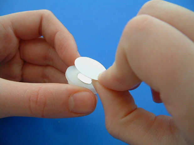 Esto no tiene que ser perfectamente en el centro, justo cerca. Para asegurarse de que el adhesivo se pega a la lavadora, aplique una presión firme a la etiqueta engomada del vinilo en un patten circular.