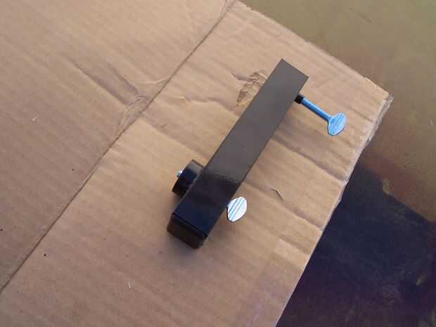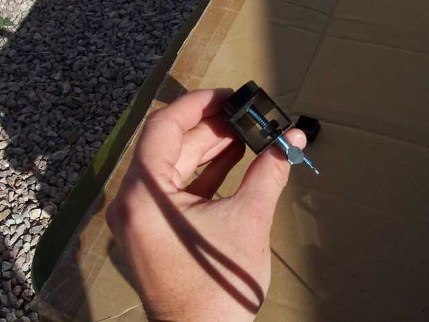 Hilo de rosca un tornillo en la tuerca de salida. Inserte el otro tornillo del orificio de la parte inferior y luego enroscar la tuerca hexagonal 1/4". Ejecutar el hex 3/4 hacia abajo el tornillo de la tuerca, pero no la apriete. Esta tuerca debe prevenir solamente el tornillo de caer hacia fuera cuando no esté en uso. Empuje el casquillo de extremo en el extremo exterior del Monte.