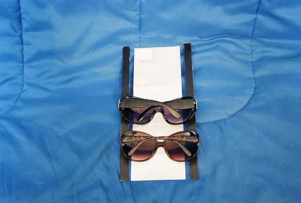 ¿En primer lugar determinar cuantas gafas de sol necesita de la ayuda, dos, cuatro, veinte? Entonces encontrar un pedazo de cartón que será suficientemente grande para contener todos tus gafas de sol. ¿En segundo lugar viene forma, vertical, horizontal, girando las instrucciones? Medir y estimar cuánto margen de maniobra que necesita para cada par de gafas de sol, y no olvide darles habitación que un par no caerse mientras estás agarrando para el bajo. Este soporte que necesitaba una forma básica con cuatro ganchos para sujetar las gafas de sol. Una vez que tengas la cara, cortar las caras laterales que le dará el soporte su forma 3D de donde colgarlo.