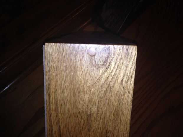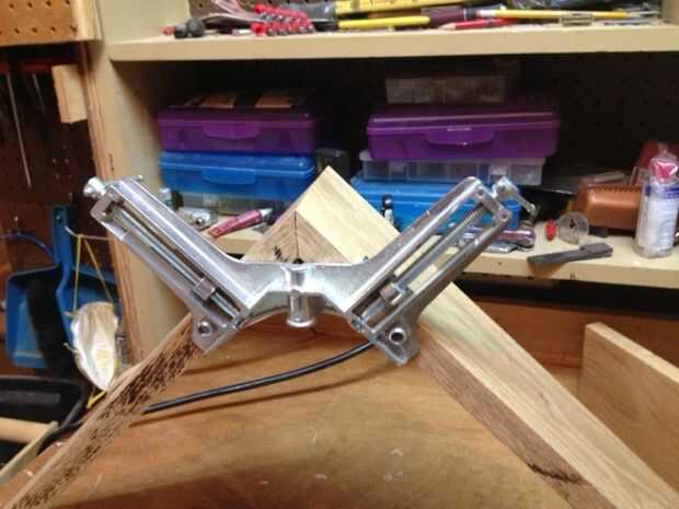 Asegúrese de que la ranura del cristal está en el mismo lado y aplique una capa ligera de madera pegamento en ambas piezas y Únete a 90 grados. Un tornillo de banco de 90 grados ayuda a aquí, pero también podría utilizar una medida de 90 grados y sujetar con cinta de enmascarar en la Unión y a lo largo de la parte superior. Sólo asegúrese de que están Unidos. Se dejará secar y luego perfore un agujero para el tornillo que une las piezas. Asegúrese de que utilizar una broca que crea un agujero ancho suficiente que se puede utilizar un tapón de cabeza plana que se madera pegamento en. Alternativamente se podría rellenar con masilla de madera o aserrín y pegamento. Después de todo, juegos, de la arena esta.