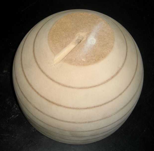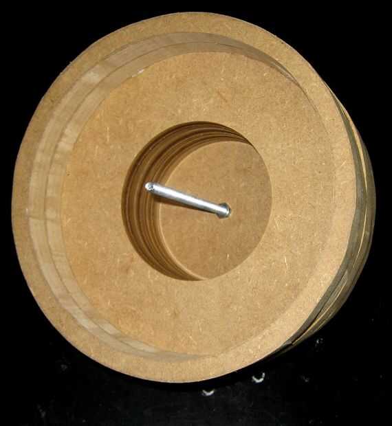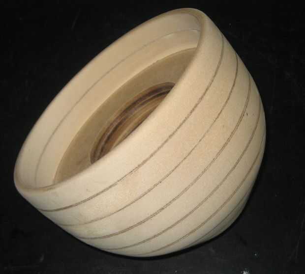 Conecte los círculos juntos pegados a un torno de madera. Utilizar un archivo, cinceles y papel de lija para crear el tazón de fuente.