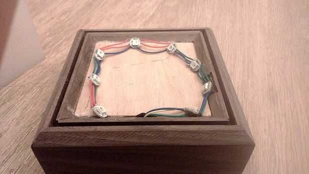 Si hicieron todo correctamente ya tienen color cambiar LED, un soporte de madera y una tapa de metacrilato.