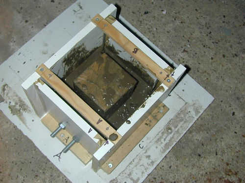 Después de verter el concreto, eliminar las burbujas de aire con martillo suaves golpecitos en la parte exterior del molde. También probé vibrar el molde con una lijadora eléctrica - pero no cuenta mucho más burbujas que aparecen.