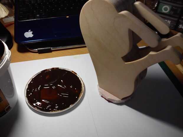Antes de aplicar impregnadores de madera decorativa, arena el cuerpo con esponja de lija de grano fino. No te olvides de limpiar todo el polvo después de eso. Cuando apliqué la primera capa sobre el cuerpo, me gustaba el color. No era lo suficientemente oscuro. Lo he aplicado dos capas para obtener el color adecuado. Lo que me gustó de esta impregnación de la madera, es con cera. Por lo que después de pocos días perro brillante.