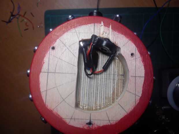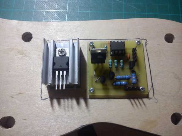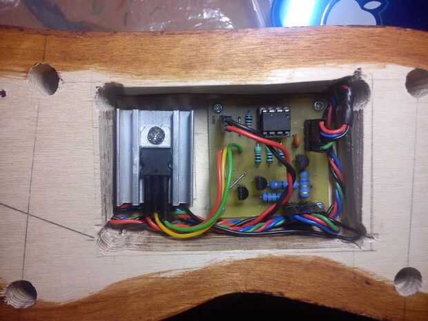 Antes de conectar la electrónica en el cuerpo de perros, Monte DC jack, pulsador momentáneo y potenciómetro en el cuello y tomar centro de todos los cables a través del cuello al cuerpo, donde se colocará la electrónica. Luego conectar todo el PCB y montar en el cuerpo.