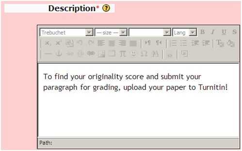 Paso 2 Escriba una breve descripción de la actividad. Esto incluye las direcciones o información sobre turn-it-in.