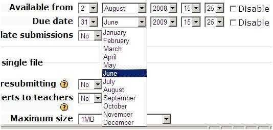 Establecer la fecha haciendo clic en las bajadas de caída. Avisos del que tiempo también está disponible. A veces yo no quiero estudiantes para iniciar una actividad hasta la hora de clase o cerrar la actividad en decir 17:00.