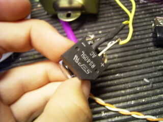 Tiempo para hacer un pequeño rectificador para rectificar el poder que sale de su transformador (que construirá en más adelante). Utiliza un puente rectificador y un condensador para hacer un rectificador compacto poco agradable. Como se ve abajo.