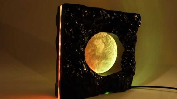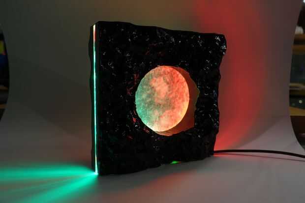 Este proyecto fue inspirado por los colores diferentes de luz a través de la noche de la luna. Esto puede usarse como una noche de luz, que indica la hora con el color. He utilizado 96 NeoPixel anillo para crear este efecto, también es programable con el usb.
