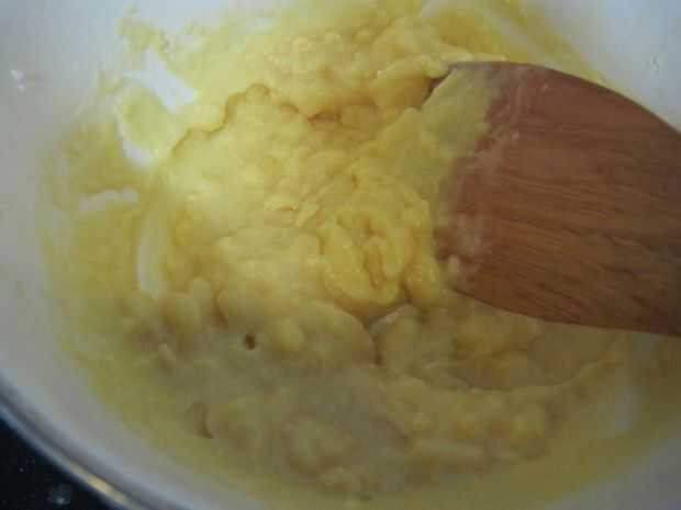 7. use una espátula y agitar continuamente la mezcla hasta que se vuelve muy suave y no pegajosa.