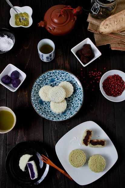 Últimos tres fotos son del año pasado, también hicimos ñame púrpura relleno y relleno de frijol rojo. También puede hacer mooncake de piel de Matcha con sabor a hielo Si desea.