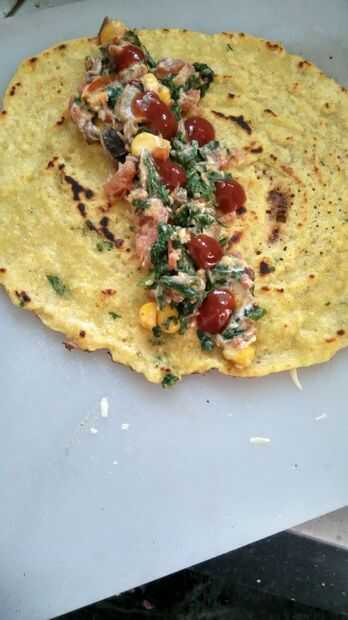 11. Voltee la cheela (abrigo) y extender una cucharada de relleno.