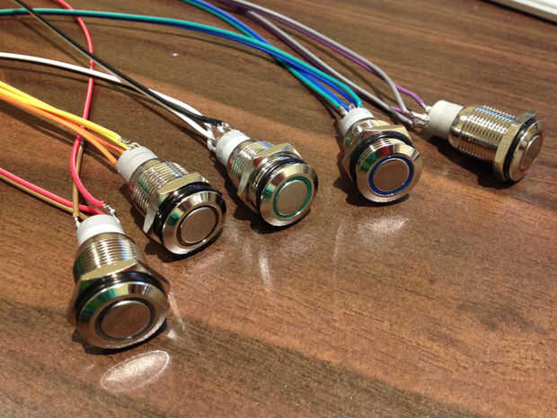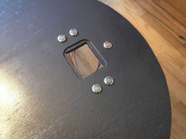 Los botones se sentarán firmemente en los orificios perforados alrededor de la pantalla de Pi y fijados a la madera con su tuerca incluida de la parte trasera.