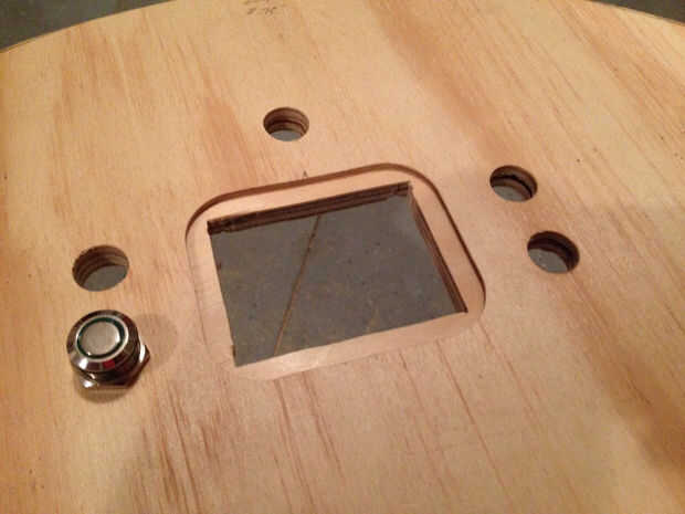 La pantalla está protegida por una pieza de acrílico transparente personalizado corte de la inserción para quedar al ras con la superficie de la madera usando un poco la barbilla en una fresadora de inmersión.