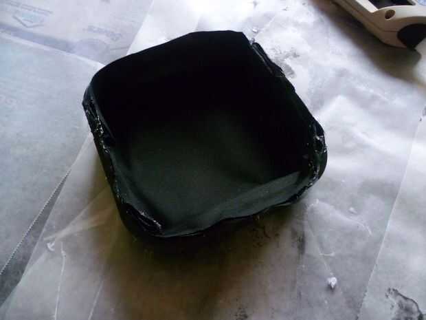 Cuando el pegamento ha fijado, cortar la tela sobrante. En este punto las esquinas son probablemente todavía sueltas. Adhiera el paño suelto en las esquinas. No tiene que ver bastante, sólo tiene que ser fuera del camino. Otra vez, espere a que el pegamento fresco y establecer.