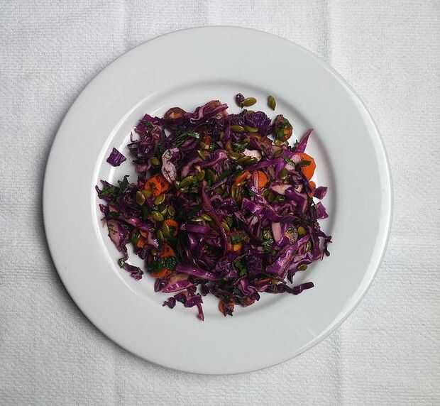 No estaba siempre un fan de col roja hasta que tuve esta ensalada. La preparación agrega mucho sabor y tiene un buen tiro. Col nunca probado tan bueno. Esta receta también puede encontrarse en charlieforstar.com..Ingredientes:semillas de calabaza cru