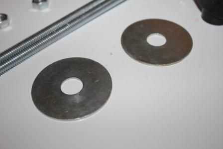 Ya tenía dos arandelas grandes que cabrían bajo los mandos de la podadora.
