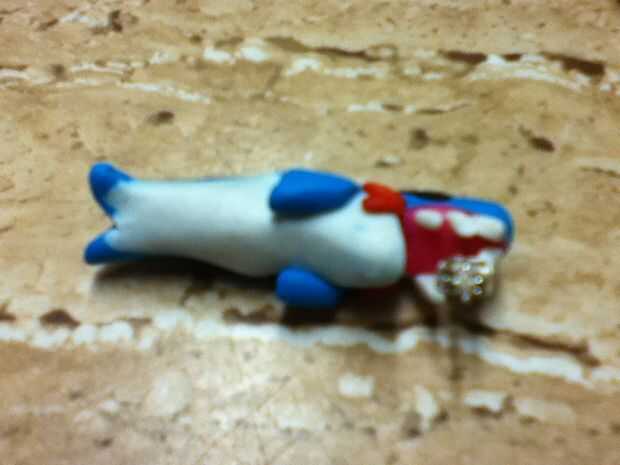 Utilizando Fimo de color rosa o rojo corta una forma del triángulo en su mandíbula superior. Empuje sobre el perno prisionero y unirse a la azotea de su boca. (Solo seguir presionando).