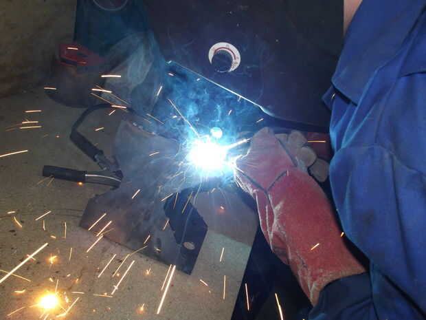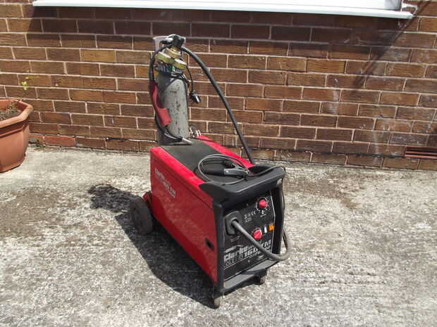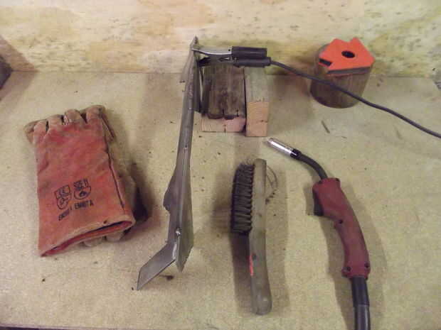 El primer paso fue establecer la soldadora. Usé algunos chatarra piezas del mismo material con abrazadera juntos en una manera similar y corrieron unos granos hasta que estaba contento con el resultado.