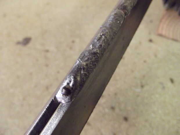 Para evitar deformaciones, en lugar de soldar toda la longitud de la Unión de una sola vez, primero soldadas unas pulgadas en un extremo seguida por unas pulgadas en el otro extremo. Entonces permití esto enfriar al copiar la rutina en las mandíbulas antes de llenar el vacío en el medio. (En realidad, habría sido más que suficientemente fuerte como para dejar solo en esta etapa, por lo que el paso final es más estético que nada.)