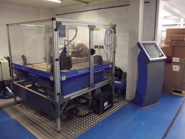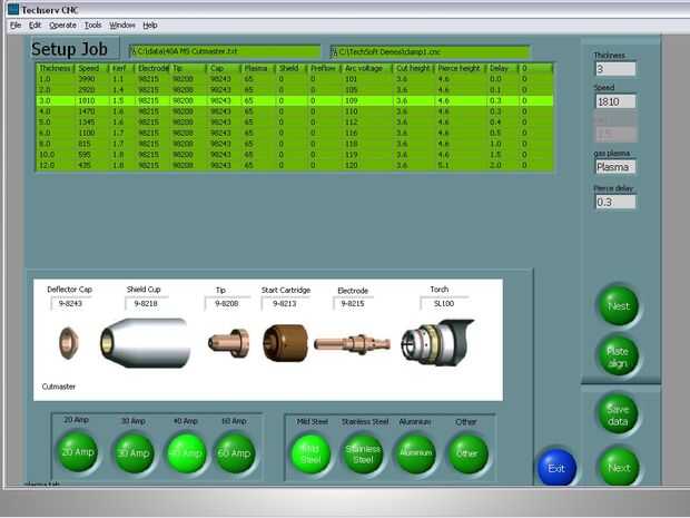 Se abrirá el archivo utilizando el software en el pedestal del controlador. Un sistema basado en asistente guía al usuario a través de ajustes como antorcha actual y material grueso y permite un punto de inicio se establece en relación con el origen del software CAD.