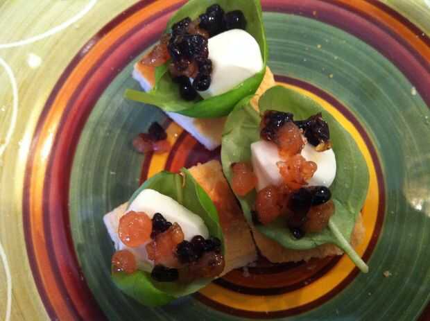 Mordeduras de Caprese con Caviar balsámico