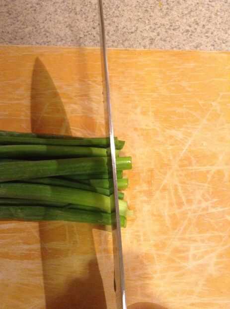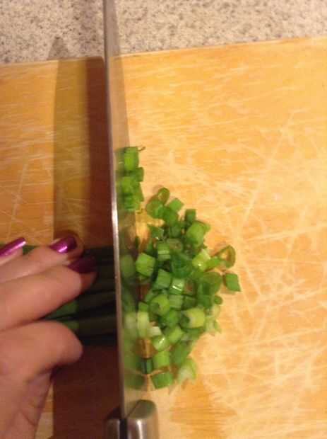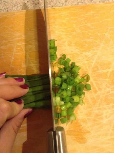 Picar la cebolleta finamente. Recuerde que el cebollino es opcional.