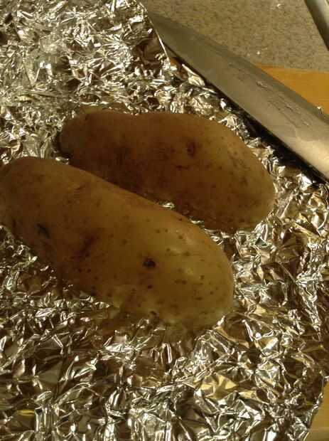 papas dos veces asadas son una receta de familia! Espero que probarlos y disfrutarlos!cebollino para decorar6 papas medianas1/2 taza de mantequilla1/2 taza de queso cheddar1/2 taza de lecheSal1. precalentar el horno a 425 grados F2. Limpie y restrieg