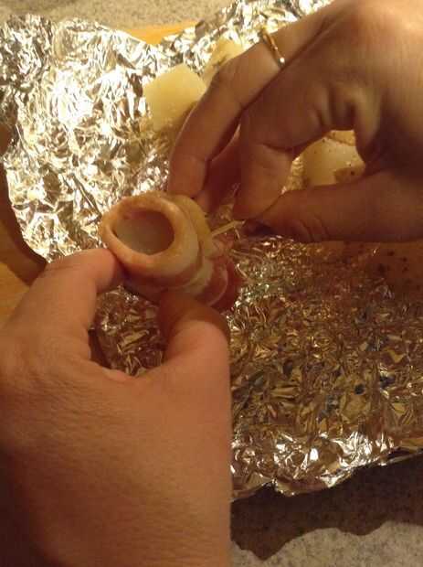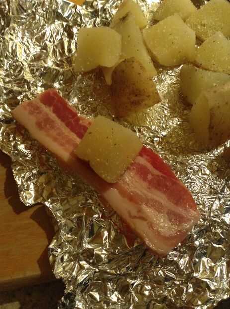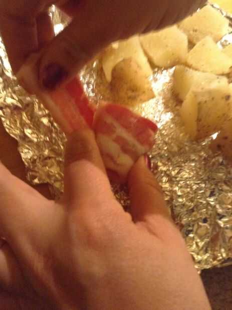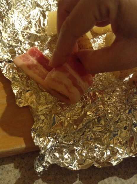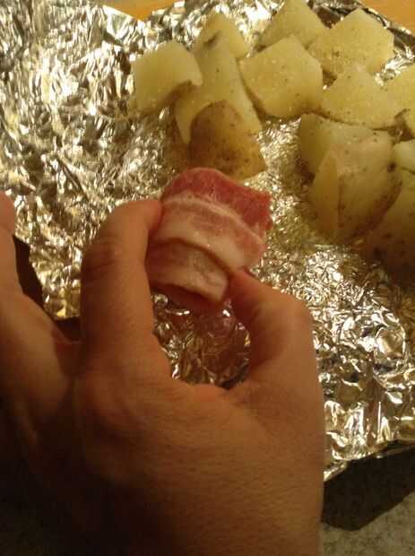 Mordedura de tamaño tocino cocido al horno patatas (8 / 14 paso)