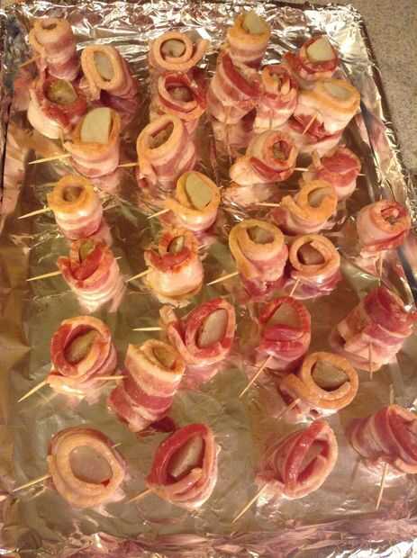 Envolver las papas sazonadas con tocino con sabor a arce y asegure el tocino con un palillo de dientes. Coloque cada pieza de tamaño de mordedura en la bandeja para hornear.