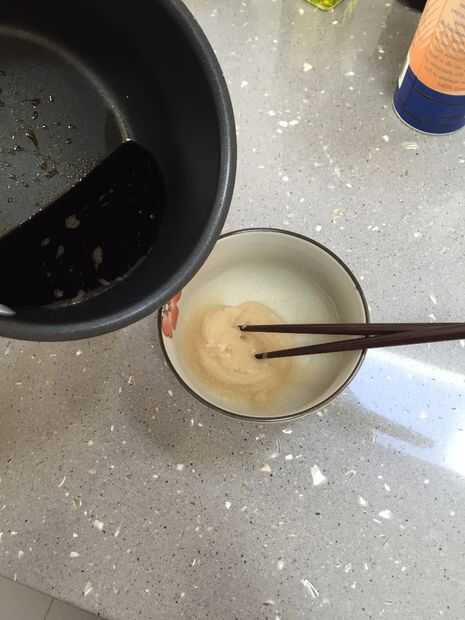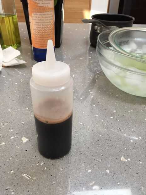 Añadir vinagre caliente a la gelatina y mezcla hasta que quede suave.