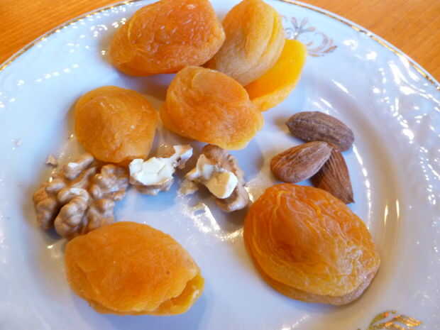 Llene las albaricoques/ciruelas deshidratadas con nueces!
