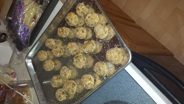 impresionante no hornea bocadillos que son perfectos para el Super Bowl!!!Paso 1: Los ingredientes y los pasos Tomar todos los ingredientes indicados y revuelva hasta que se mezcle bien. Cuando haya terminado, los ingredientes del molde mini bolitas