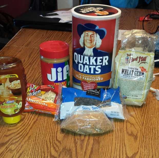 Mejor energía eléctrica-ups del mundo están aquí! Con mantequilla de cacahuete y chips de chocolate, nada le ganará a este aperitivo!Lo que usted necesita:-CHOCOLATE CHIPS!!!!!!-COCO TOSTADO-EXTRACTO DE VAINILLA-MANTEQUILLA DE MANÍ!-AVENA TRADICIONAL