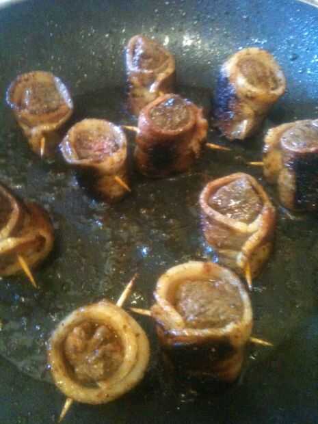 Aquí es una gran manera de convertir un solomillo barato y aburrido en algo que tus amigos y familiares les encantará.Estos tocino envuelto filete las mordeduras son fáciles de hacer. Siempre puede cambiar los ingredientes de relleno para sus gustos.