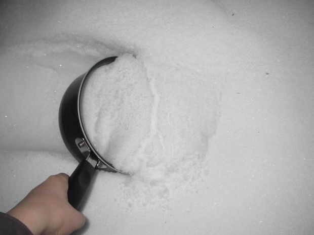 Salir y buscar algo limpio de nieve y cucharada para arriba en la bandeja.