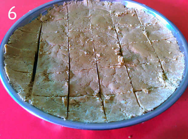 Tomar un cuchillo y corte la mezcla en plazas. Si no eres capaz de cortar la mezcla en plazas, significa mezcla no está preparada. Pero no te preocupes, simplemente raspe la mezcla, ponerlo en el molino y repita los pasos anteriores. Usted estará muy bien. :)