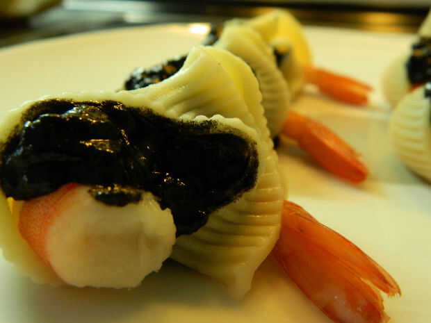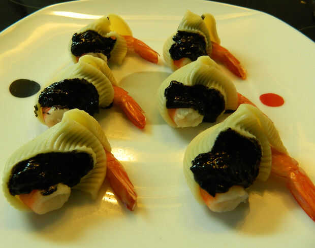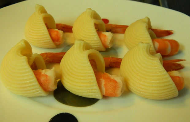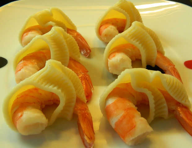 Como todos los componentes de este plato será frío, caliéntelo en el horno durante 5-10 minutos a 50 º c/122 º f (no calentar en el microondas). Servirlo decorado como una "mordida" y comen tomándolo por la cola.