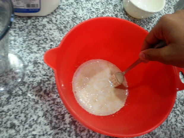 ... entiende que, añadir la levadura y mezclar junto con un tenedor. Póngalo a un lado por 10 minutos para comenzarla. Esto se llama "Prueba de la levadura".