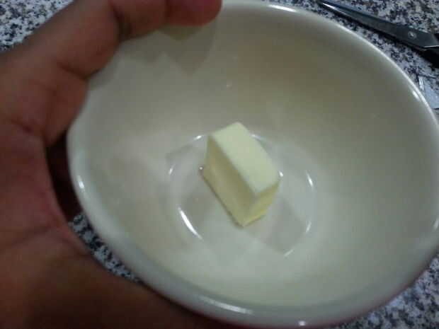 Ahora en un recipiente seguro de microondas, derrite la mantequilla. No en el microondas hasta que se derrita porque esto puede causar salpicaduras. En cambio, derrita 3/4 de la mantequilla y remolino alrededor el resto en el recipiente hasta que se derrita demasiado.
